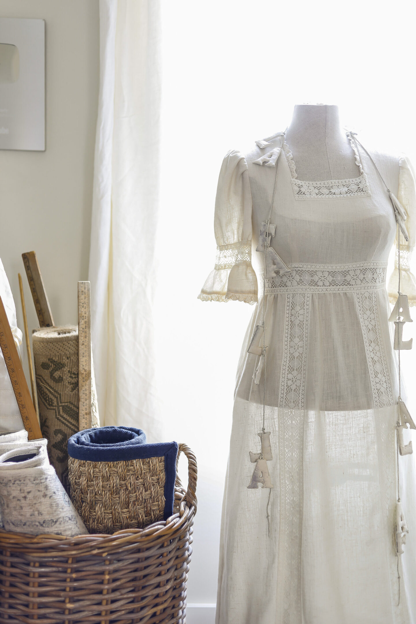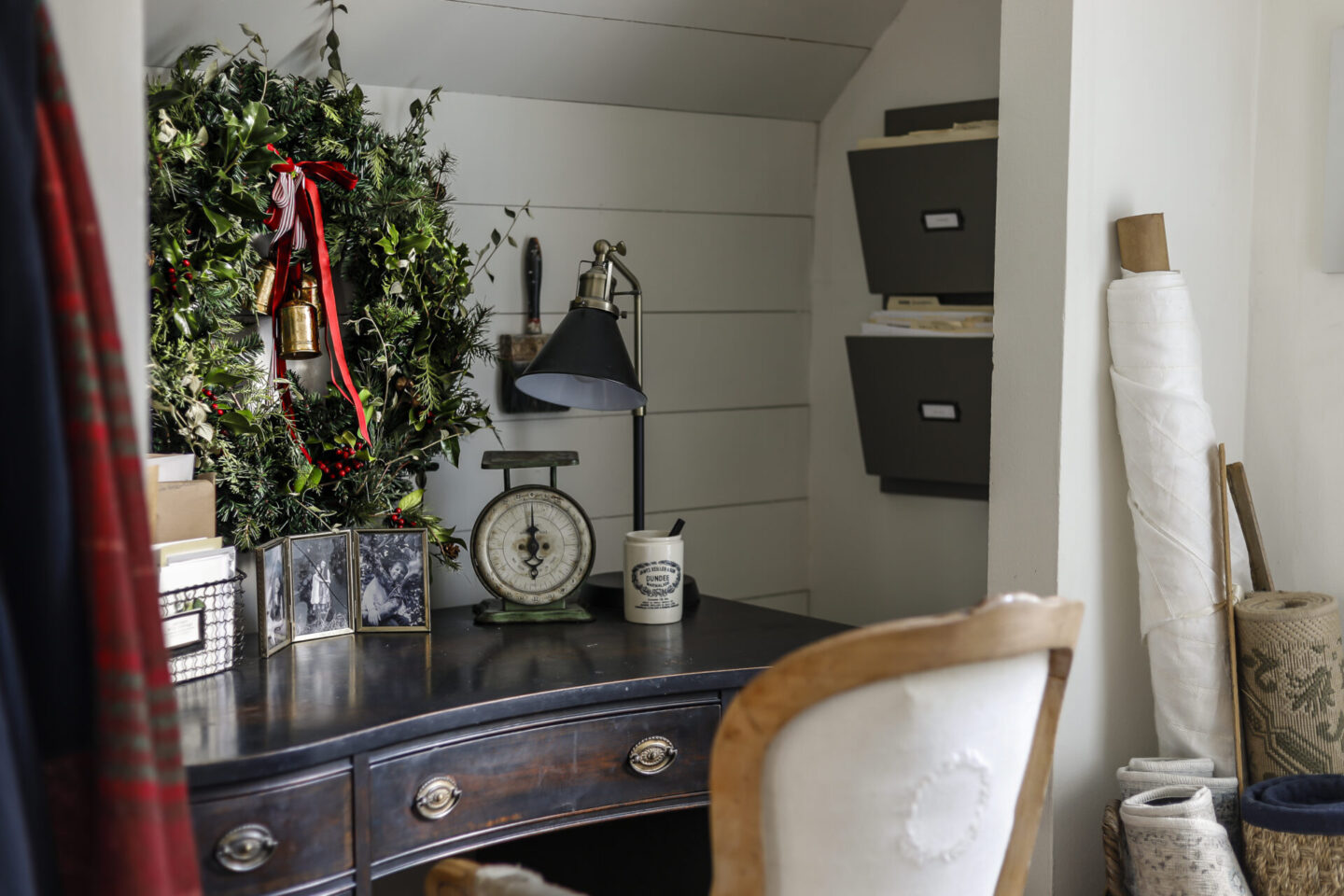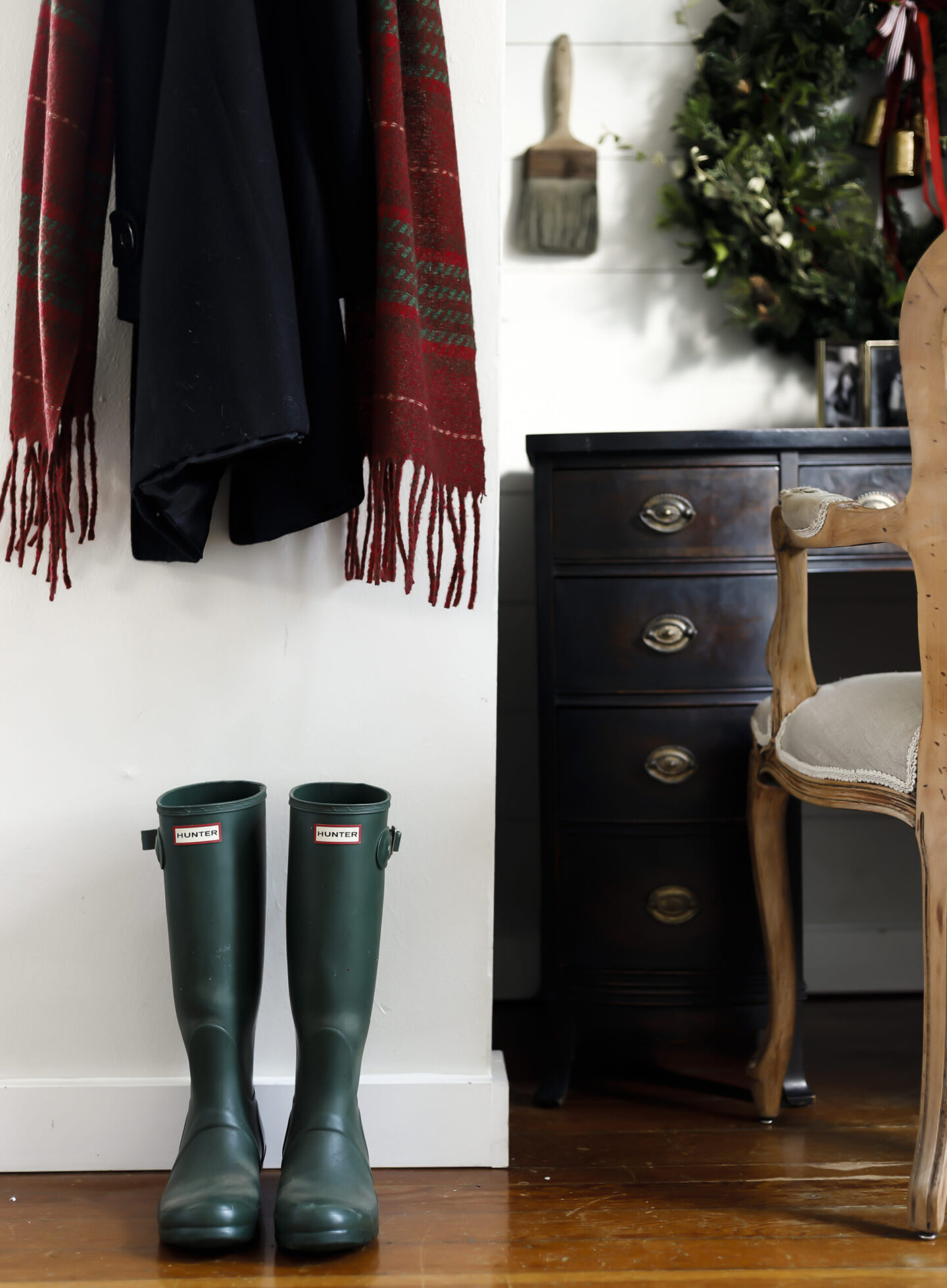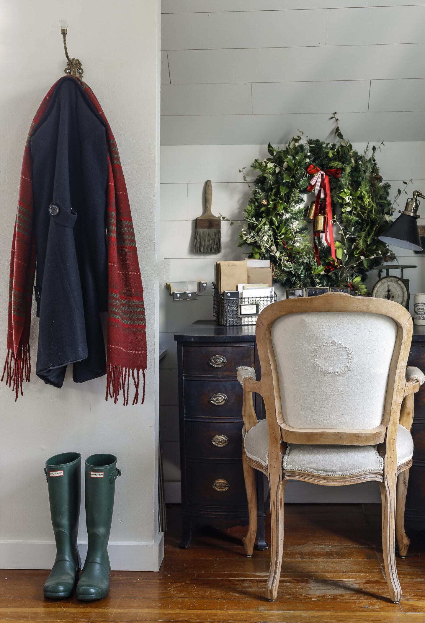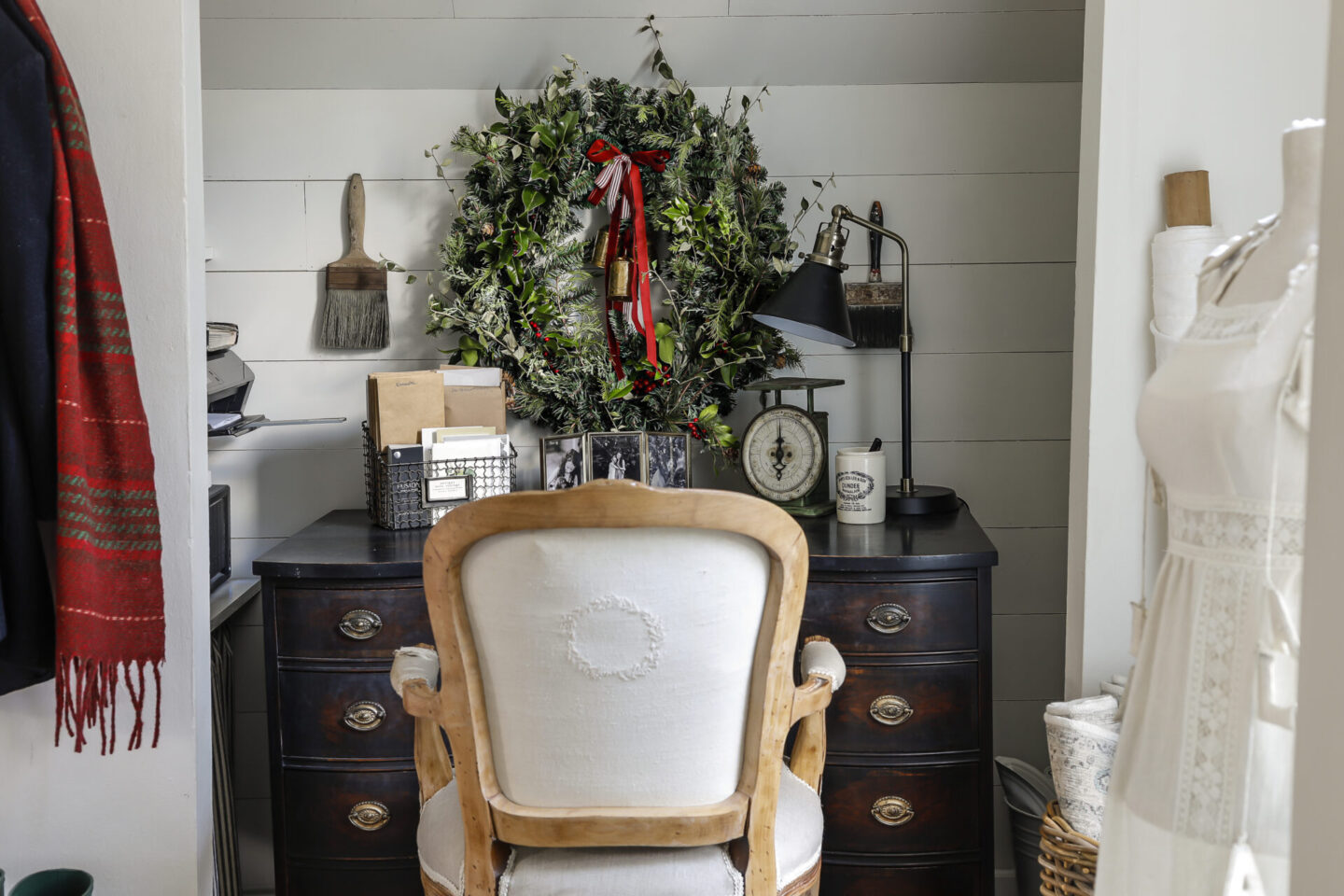 I love incorporating my Mom’s wedding dress into my decor, and for Christmas the past few years I’ve just added this simple “fa-la-la” garland. It’s such a sweet touch!